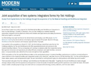 Dunes Point Capital Acquires Hy-Tek Material Handling & WorldSource Integration to Form Hy-Tek Holdings