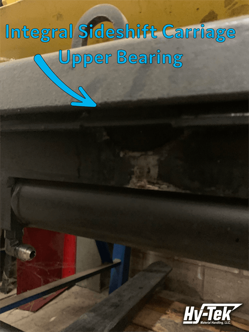The bearing areas are cleaned and the side-shift bearings are inspected for wear beyond a set mm thickness.